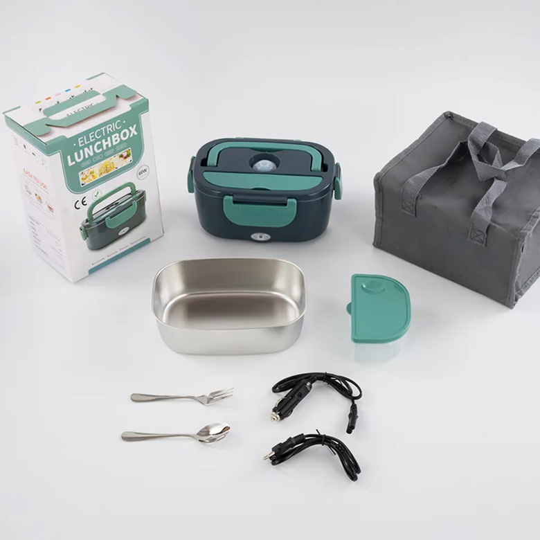 Item name: 1.5L electric heated lunch box Material: Food grade Plastic PP+ stainless steel Standard size: 245*125*90mm Power: 220V/50Hz, 110V/60Hz Watt: 60W Capacity: 1500ml Accessory: Spoon and fork Packing: 1 pc per paper box packaging | - Logo /design: customized - Normal colours:green,blue,red,orange,white,or custom - Heating time: It can reach 45-60 ℃ in 20-30 minutes, - The maximum temperature can reach 70 ℃ - Application: Popular in Home/Office/Car/etc.. - Function: Keep food warming & fresh Easy to clean Heating food Promotion, Gifts, Wedding, School, Travel, Friends, etc |